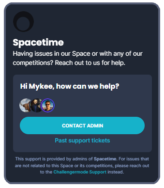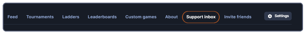 The Support Inbox is located in the Space overview - and it contains tickets sent to your Space members, anywhere on your Space. Whether it's from a lobby in an active tournament, on the Space page itself or while a member is browsing your feed.