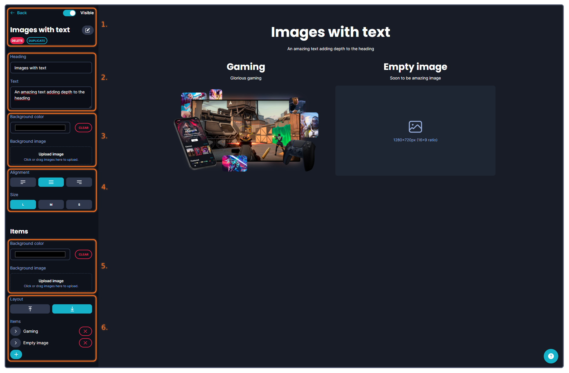 In this article we'll go through the different tools you can use in order to set up and customize your Images with text section!